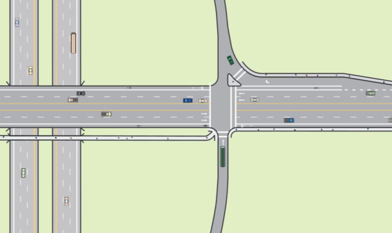Interchanges and large intersections can be particularly challenging and dangerous places for bicyclists due to the high speeds and conflicts typically associated with the free-flow and yield-controlled conditions these locations. Often, these are locations with high traffic volumes and speeds, and a lower driver expectation of bicyclists. These locations are also often pinch points in the network where bicyclists have few other options to navigate across a busy road or freeway.